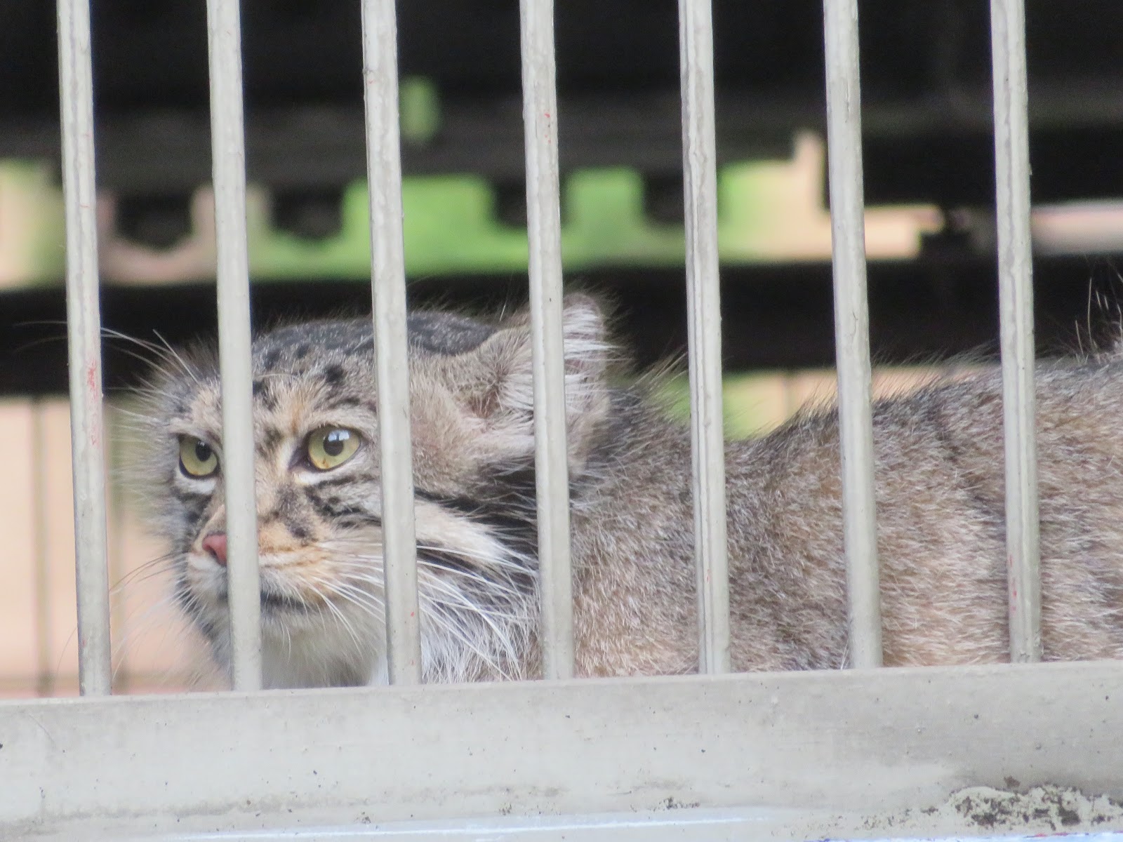 マヌルネコが上のほうにいると、食肉小獣舎の裏側にいるマヌルネコが見えるんです。