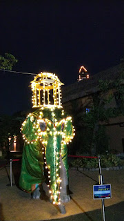 スリランカ「ペラヘラ祭」をイメージして、電飾や装飾を飾り付けしたゾウのモニュメントです。