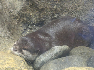 コツメカワウソは、ライトアップされている屋外の運動場ではなく室内にいました。